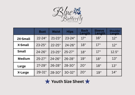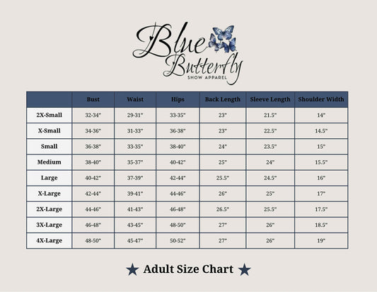 Be the first to ride in style with the latest custom pieces from Blue Butterfly Show Apparel. Freshly released and now available to order—each design can be tailored to your exact fit, colors, and show-ring needs.